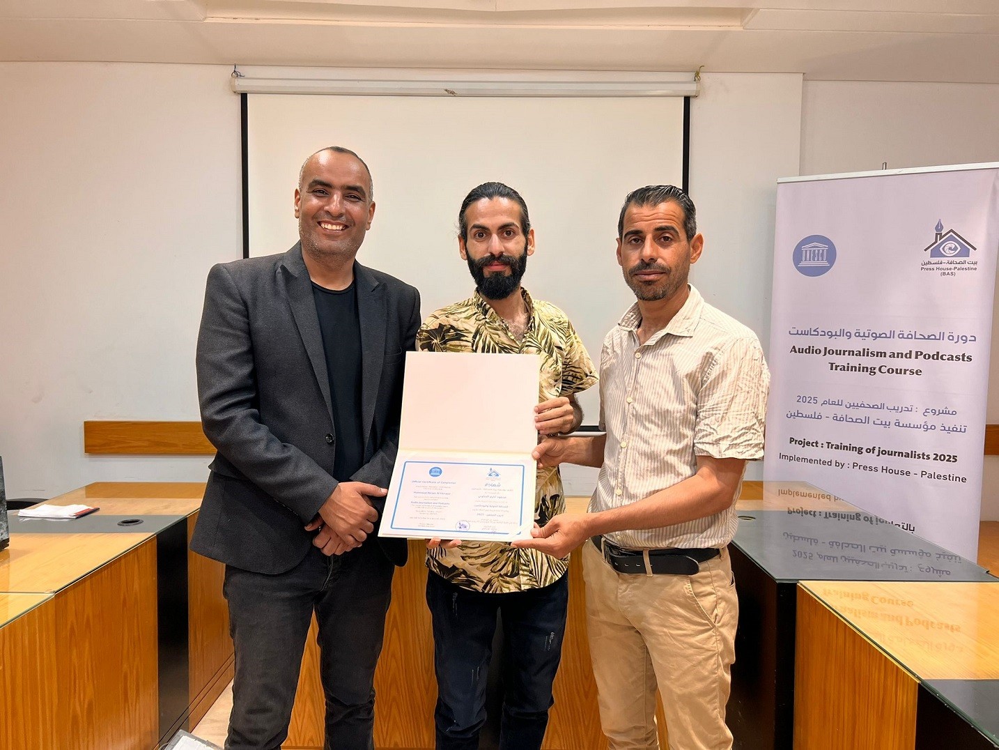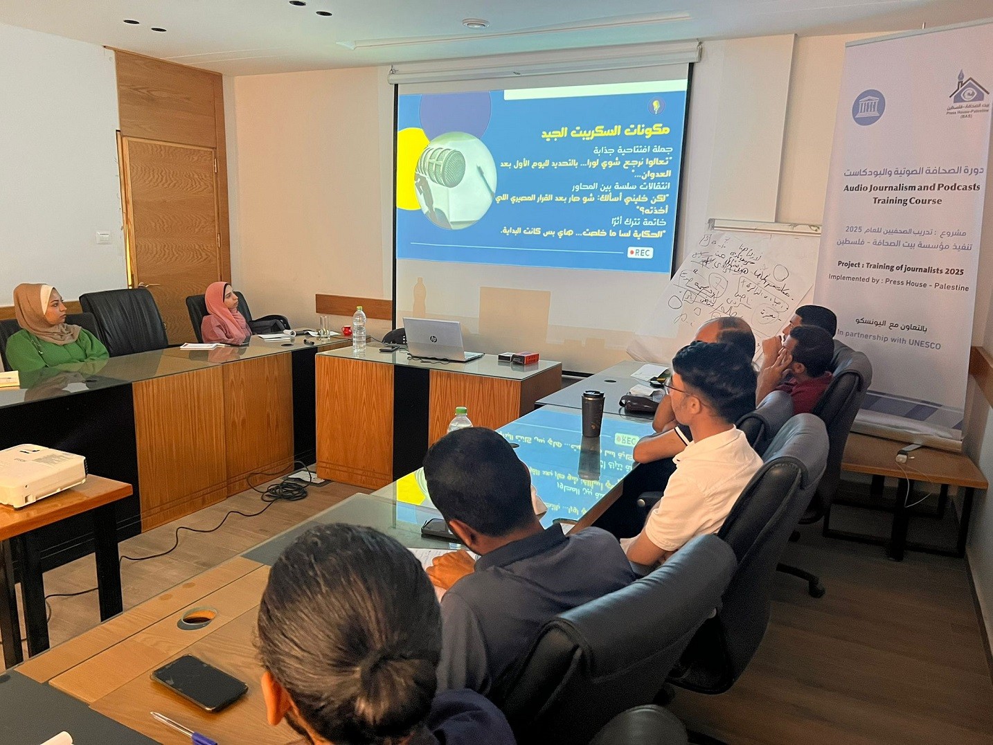 اختتم بيت الصحافة – فلسطين، الثلاثاء 3 يونيو 2025، دورة تدريبية بعنوان "الصحافة الصوتية والبودكاست"، وذلك ضمن مشروع "تدريب الصحفيين 2025" الممول من منظمة اليونسكو.