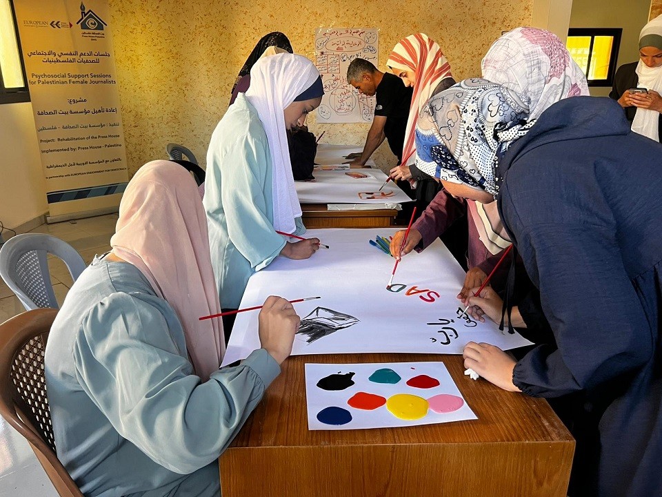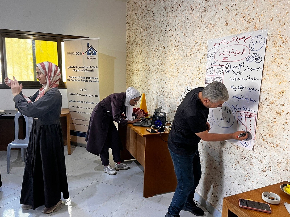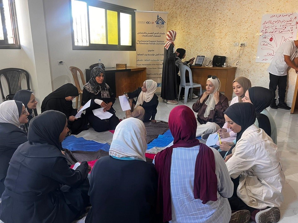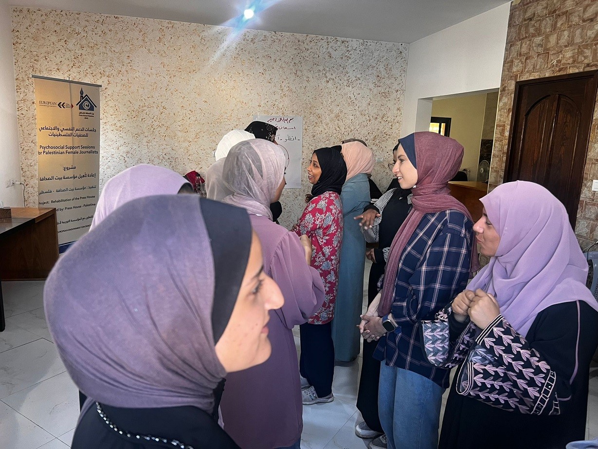 نفذت مؤسسة بيت الصحافة – فلسطين، الأحد 19 أكتوبر 2025 ، جلسات دعم نفسي اجتماعي لـ 15 صحفية من قطاع غزة ، وذلك ضمن مشروع " إعادة تأهيل بيت الصحافة" الممول من المؤسسة الأوروبية لأجل الديمقراطية.