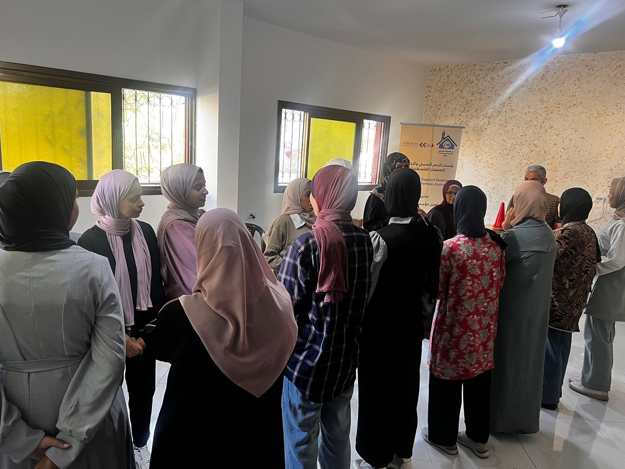 وهدفت الجلسات التي استمرت لمدة أربعة أيام ، وقدمها المختص النفسي والاجتماعي إياد الديراوي ، توفير بيئة امنة ومحترمة وسرية لتبادل الخبرات والمشاعر ، وتقديم الدعم الفوري والاسعافات الأولية النفسية للمشاركات بهدف خفض التوتر والحزن الشديد وتقوية البنية النفسية لأجل مواجهة اثار الصدمة النفسية العاطفية والمعرفية والسلوكية والجسدية.
